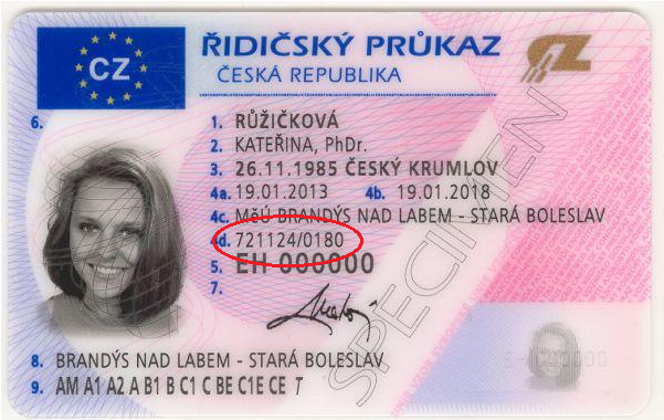 Na prednej strane vodičského preukazu.